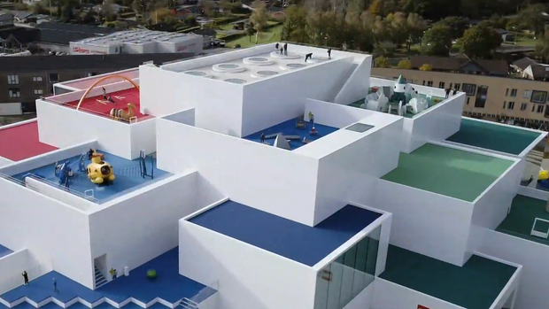 A massive interactive LEGO experience center in Billund featuring 25 million bricks.
